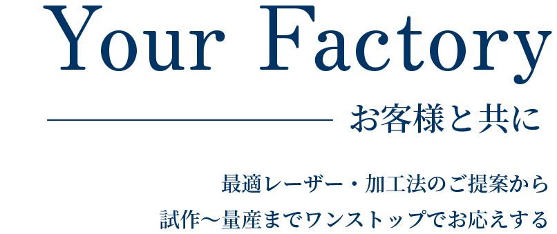 さまざまなレーザー加工機と熟練の技術者をお客さまが自社保有することなく量産加工までご利用いただけます。